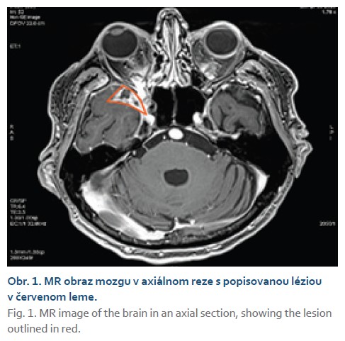 aforementioned lesion with involvement of the optic nerve and, to a lesser extent, the medial rectus muscle of the orbit. Based on imaging findings, radiologists leaned toward a diagnosis of a suspected tumor likely meningioma; the possibility of an abscess was less likely (Figs. 1, 2).