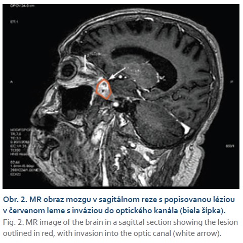 In February 2023, the patient was readmitted, this time to the Department of Ophthalmology at J. A. Reiman University Hospital in Prešov due to sudden onset of amaurosis in the right eye. At the start of hospitalization, a new brain MRI was performed, revealing isolated hyperintense lesions in the white matter of the brain bilaterally, predominantly in the paraventricular and subcortical regions. The condition was assessed as suspected posterior ischemic optic neuropathy. Pulse therapy with corticosteroids and vasodilator therapy were initiated, resulting in partial improvement of vision in the right eye and the patient’s subsequent discharge.
