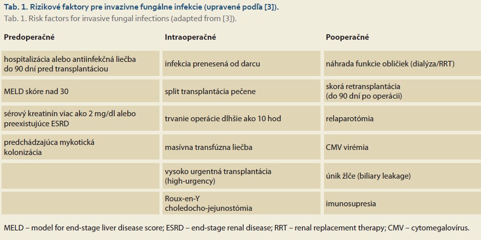 Orthotopic liver transplantation is a life-saving procedure for patients with end-stage chronic liver disease, acute liver failure, and certain types of malignancies [1]. Due to immunosuppressive therapy, post-transplant patients are at risk for several complications, including rejection and infections. Infections are the most common cause of death in the early postoperative period [2]. In addition to common infections, patients are also susceptible to opportunistic infections, including multidrug-resistant microorganisms and invasive fungal infections (IFIs). The incidence of IFI in liver transplant patients ranges from 5% to 42%, with mortality ranging from 25% to 80%. Potential risk factors for the development of IFI can be divided into three groups based on the timing of occurrence: preoperative, intraoperative, and postoperative [3]. A detailed overview of risk factors is provided in Table 1.